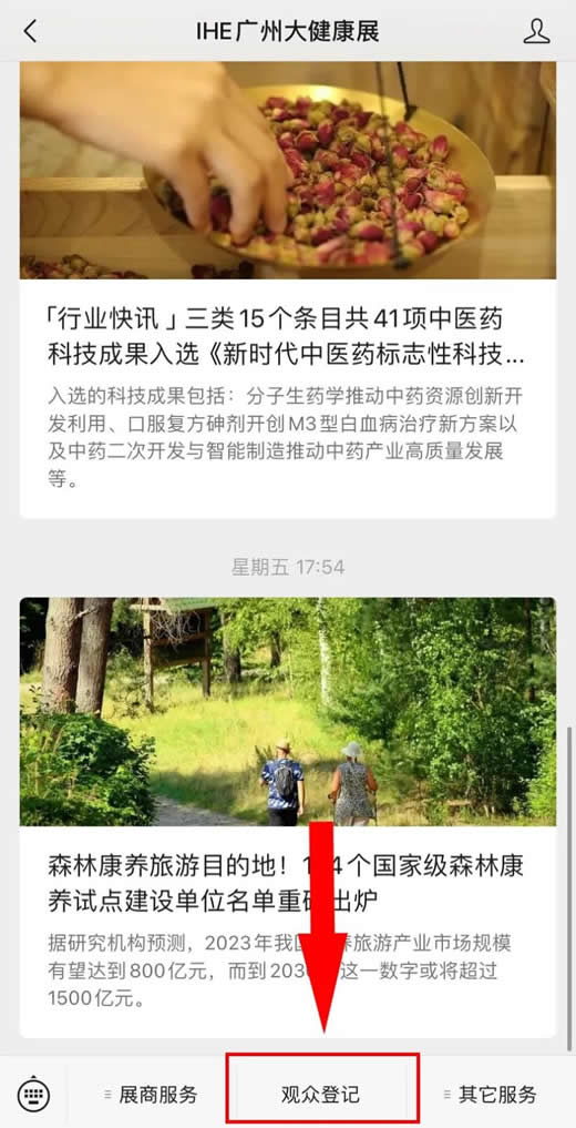 STEP1:扫码关注展会公众号“IHE广州大健康展”。